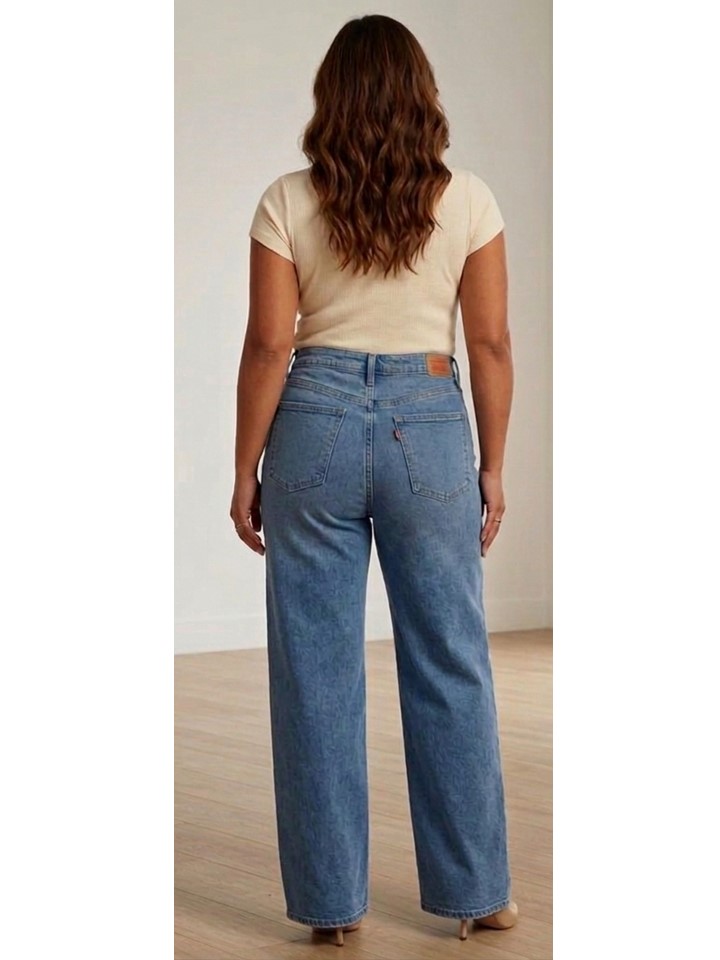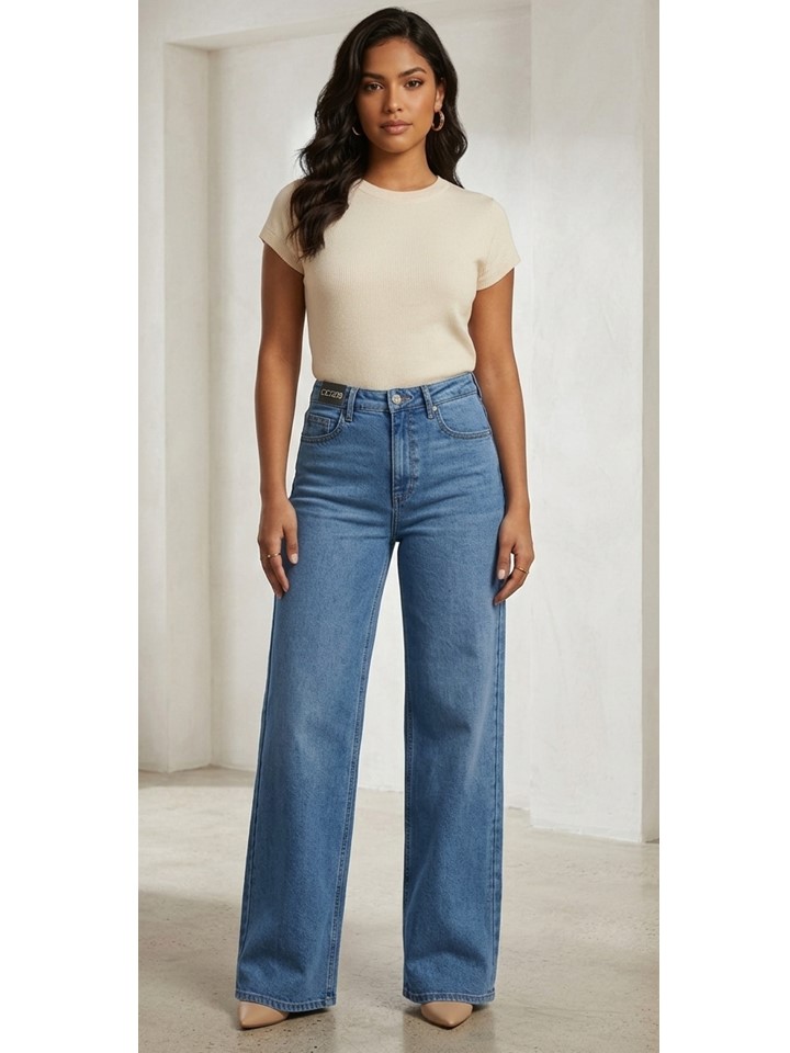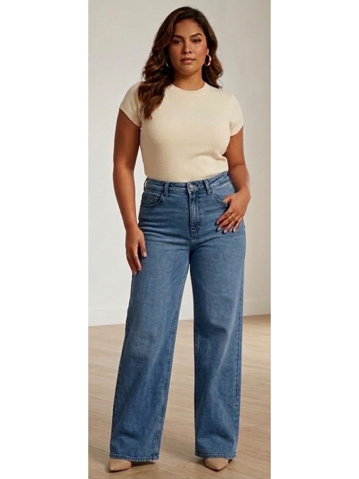 Los jeans wide leg para dama son pantalones de pierna ancha y holgada que se ajustan en la cintura y cadera, cayendo rectos o en forma de "A" hasta el suelo. Generalmente de tiro alto, estilizan la figura, ofrecen comodidad y versatilidad, ideales para looks casuales o sofisticados.