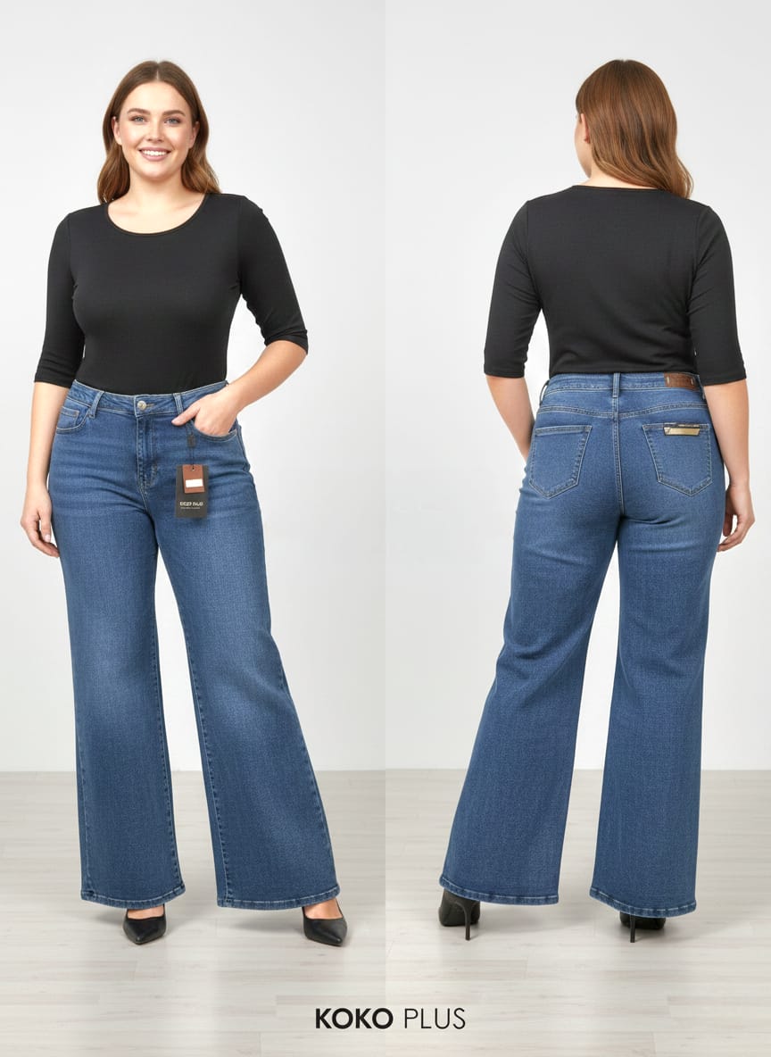 El corte Wide Leg talla regular para mujer se define por una pierna muy ancha y recta que cae suelta desde la cadera o el muslo hasta el tobillo, ofreciendo una silueta relajada pero estilizada, generalmente con tiro alto o medio para alargar visualmente las piernas y definir la cintura, siendo muy versátil para looks cómodos y formales.