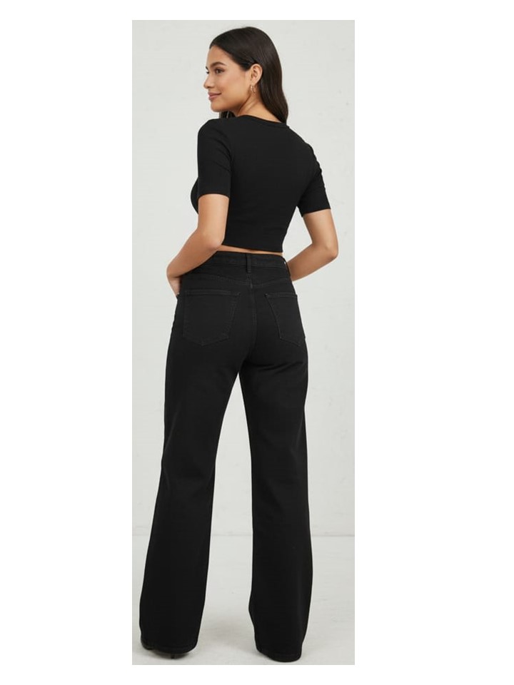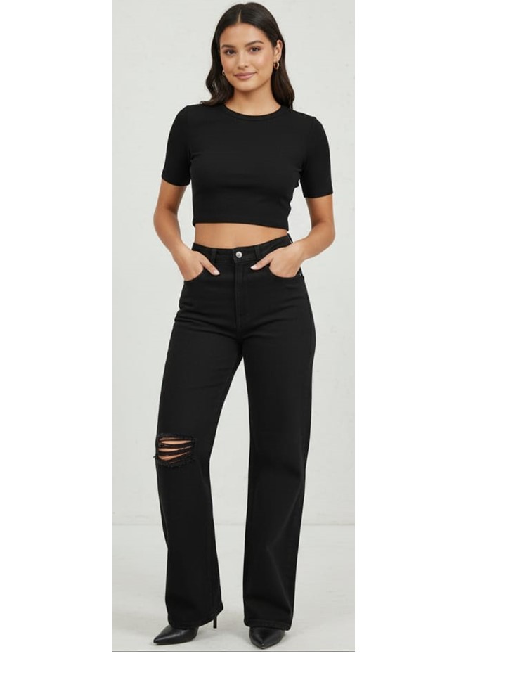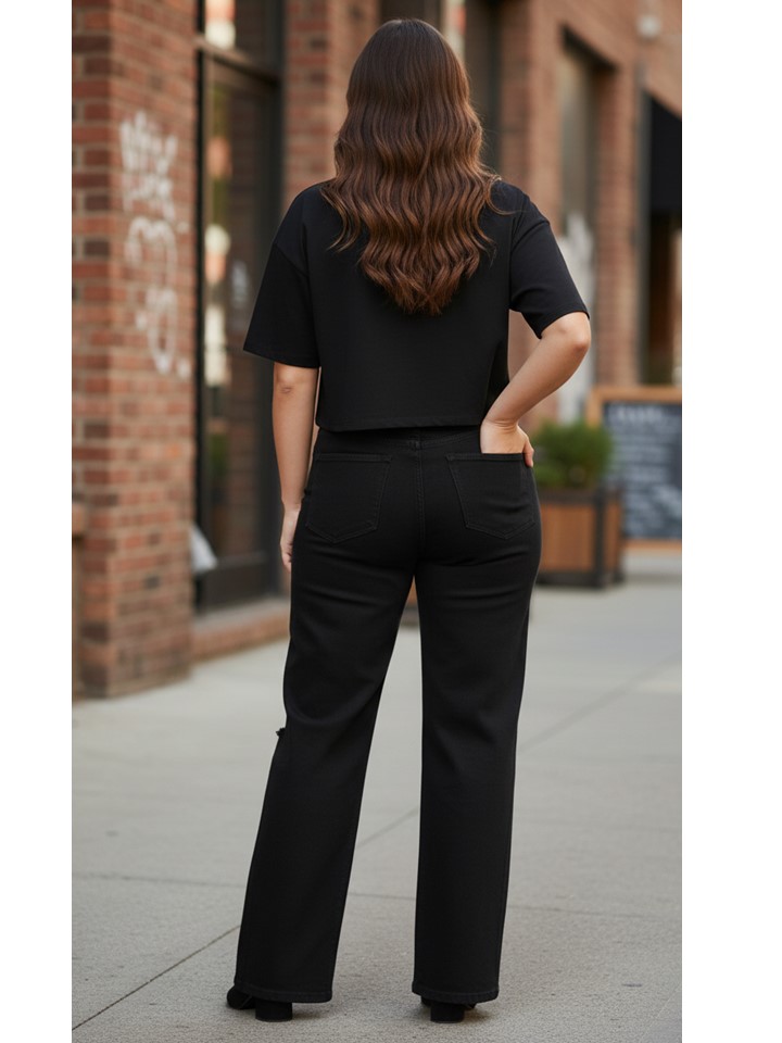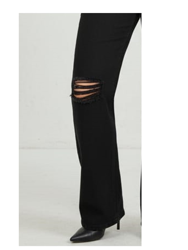 PANTALÓN WIDE LEG NEGRO CON DESTRUCCIÓN Y EPANDEX